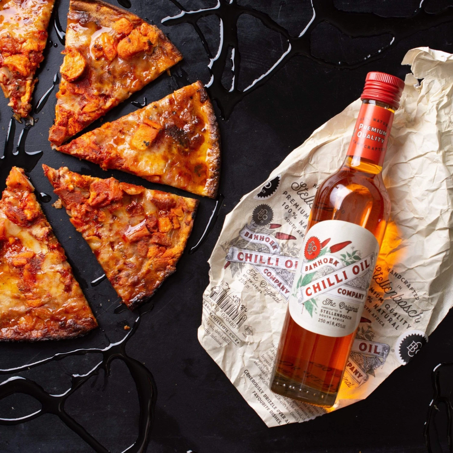 Place of Origin: South Africa [/accordions-break]Each small batch of Banhoek’s chili oil is made by hand in custom-built production kitchens using ingredients harvested from the lush farmlands of South Africa’s Overberg district, such as premium canola oil and Thai chilies that are sun-dried, gently crushed and then are infused into the oil using induction heat technology to ensure a bold and balanced flavor.[/banner_heading] It’s later drained, cooled and run through a 16-stage filter until its transparent and rosy-hued, with no remaining chili bits that could alter the taste as it ages.[/banner-text-break]Use anywhere you’d like a dash of clean chili heat: Drizzle atop dishes like our Two-Cheese Pasta with Cauliflower, pizza, popcorn, bread and even a cheese plate or incorporate into dressings for leafy greens or our Smashed Cucumber Salad. You can also bloom aromatics in the oil before adding to everything from marinades to soups.