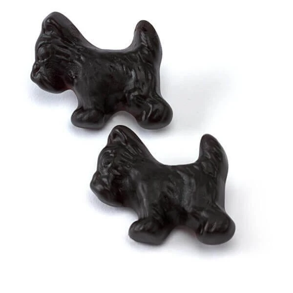 Made with top quality ingredients, including real licorice root and pure anise oil, these are one of the few licorice candies produced using a starch molding process rather than extrusion. The result: each piece has a very tender bite allowing for immediate and uninhibited flavor release. These adorable Scottish Terriers will keep your taste buds begging for more!