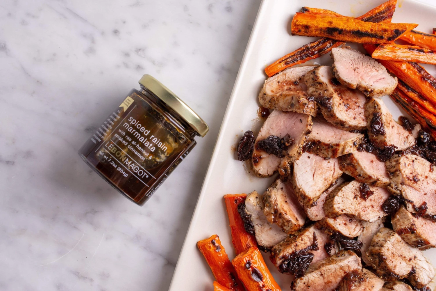 [/accordion] CARE AND USE [/title] N/A [/accordions-break] Inspired by the flavors of the Silk Road, Le Bon Magot’s small-batch artisanal marmalades have an astounding depth of flavor. [/banner_heading] [/banner-text-break] Spiced Raisin Marmalata will transform any cheese plate and charcuterie, whether you pair it with nutty aged Gruyère or crumbly blue cheeses. Similarly, we like to serve it on toast with ricotta or mascarpone as a counterpoint for the warming spices. You can also use it to glaze roasted vegetables, such as our Roasted Acorn Squash with Browned Butter-Orange Vinaigrette—add a few spoonfuls to the sauce after it has reduced, then adjust the seasoning to your preference. Or keep it simple and add a dollop alongside pork or lamb, similar to how you would serve cranberry sauce with turkey. On the sweet side, spoon some of the preserves over yogurt or ice cream for an aromatic and rich dessert.[/how-to-use-break]