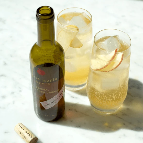 [/description-break] Ingredients [/title]Ingredients: Organic apples [/accordion] Specifications [/title]Net volume: 375 milliliters[/accordions-break] Apple cider vinegar is one of the most common vinegars most home cooks reach for, yet what’s sold in most supermarkets is harshly acidic and tasting of anything but apples. Sebastopol’s Little Apple Treats makes apple cider vinegar, however, it’s a world apart from the supermarket stuff.[/banner_heading] [/banner-text-break] The cider’s bright, clean flavor is ideal for all manner of dressings, vinaigrettes and pan sauces. Its excellent with pork–use it to deglaze the skillet or roasting pan after cooking chops or a roast, then finish with chopped thyme and softened butter. The vinegar’s fruitiness pairs well with roasted winter squash–try with sage and bacon–braised red cabbage or in fruit chutneys. A spoonful will cut the sweetness of caramel sauce. [/how-to-use-break] A splash of apple cider vinegar blended with soda water and loads of ice makes for a refreshing summer drink. Or add to ginger beer to cut the sweetness–add bourbon if you like.Little Apple Treats Original Apple Cider Vinegar