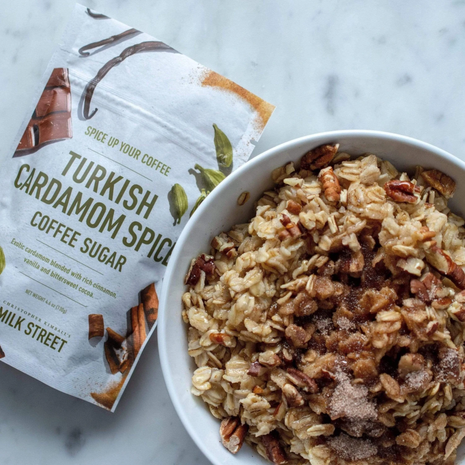 [/description-break] Ingredients [/title]Ingredients: Sugar, natural flavor, cocoa powder (processed with alkali), cardamom, cinnamonAllergens: Produced in a facility that processes nuts.[/accordion] Specifications [/title] Net Weight: 4.6 ounces [/accordions-break] [/banner-text-break] Beyond coffee and tea, sprinkle some on nut-forward loaf cakes right before baking for added texture and a flavor boost. This aromatic blend also pairs wonderfully with the citrusy glazes for cakes or muffins: Swap a few teaspoons in a honey-orange juice glaze, or sprinkle some on immediately after glazing your dessert to enhance the crackly, sweet shell.[/how-to-use-break]Sugar isn’t just for sprinkling– try infusing your recipes with flavor by swapping out our spiced sugars for some or all of the sugar in everyday baking recipes, such as sweet biscuits and scones, pancakes and waffles, and pastry crusts.