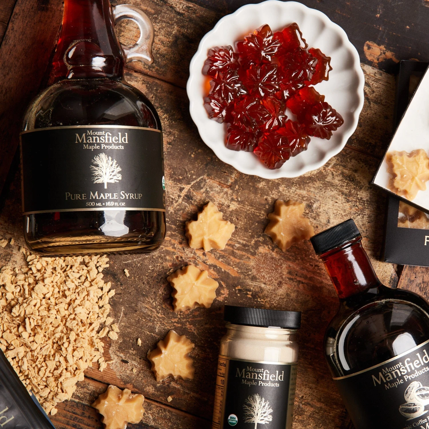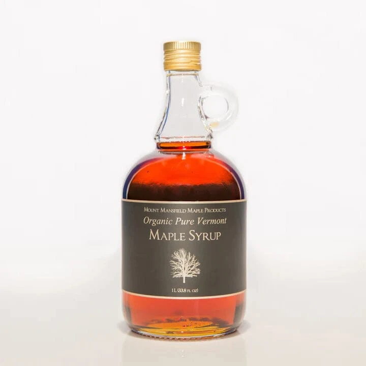 Place of Origin: Vermont, USA[/accordions-break]Nestled within the foothills of Vermont’s Green Mountains near the base of Vermont’s tallest peak, Mount Mansfield, is a family farm that harvests maple sap from over one thousand acres of well cared for maple trees.[/banner_heading]Mount Mansfield Maple Products’ founder and owner, Chris, is a fifth-generation maple sugar maker, and in 2009, he created a website to share his family’s maple crop. (Until then, the company consisted of a plywood platform in the garage and a post office box.) Today, they make award-winning syrup, most recently winning a 2021 Good Food Award—a coveted award that recognizes the best of socially responsible specialty foods—for their organic Dark Robust (Grade B) maple syrup.[/banner-text-break]Use it anywhere and everywhere you’d use your favorite maple syrup: in coffee, on pancakes and waffles, and just straight out of the bottle.[/how-to-use-break]