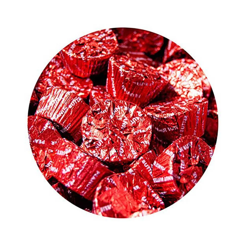 Bag contains 4 pounds of Palmer Red Foiled Peanut Butter Cups.