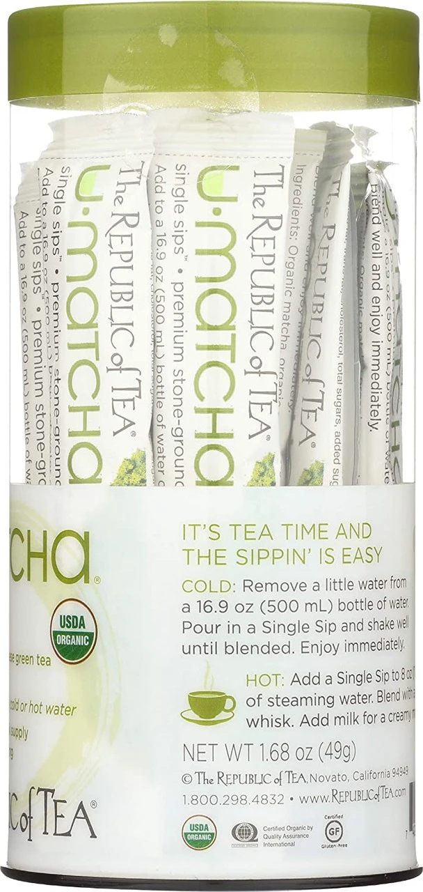 Add a Single Sip packet directly to a bottle of water for a chilled matcha simply pour, shake and sip! If you prefer a freshly made cup of matcha wherever you are, add a packet to hot water then give it a stir; no need for fancy whisks or frothers. Each recyclable PET canister includes 14 individual Single Sip packets for a two-week supply.