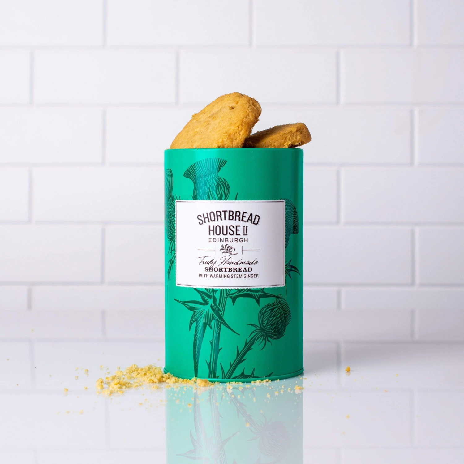 [/description-break] Ingredients [/title]Ingredients:Flour, butter, salt, sugar, ground rice, vegetable oils (rapeseed & segregated sustainable palm oils), stem ginger (6%), ground ginger[/accordion] Specifications [/title]Net Weight: 140 grams (7 cookies per tin) [/accordions-break]Each one of these shortbreads are made from a treasured recipe passed down through generations of bakers.[/banner_heading]Every shortbread is crafted by hand and produced in small batches to keep each biscuit’s taste and texture on point. Plus, they’re baked to order, so freshness is never compromised.[/banner-text-break]Pair these treats with a cup of tea or glass of port or other fortified wine. Or use them as a unique addition to a cheese board—we love how the biscuit’s salty sweetness pairs with cheddar. They’re also packaged in an attractive tin ideal for holiday gifting.[/how-to-use-break]May contain nuts, egg and soya.Sale!